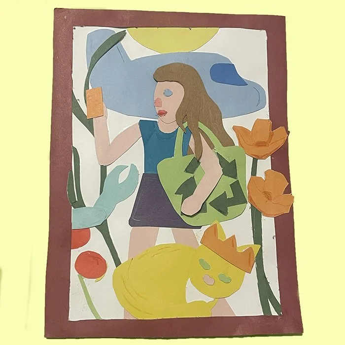 I wanted to create something that included all the things that make Anna - Anna from her King cat Biskit to her community garden volunterism to her passion for travel. I learned a lot in this process and would love to try again with a new tool for cutting paper and a new approach to the faces.